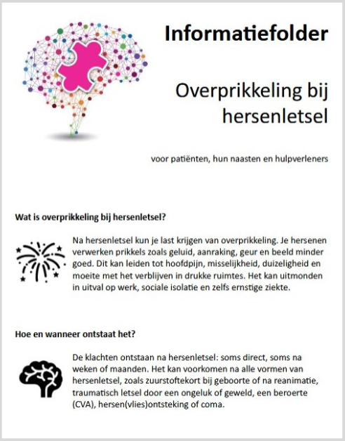 Hersenletsel-uitleg heeft een hele goede informatiefolder: ‘Overprikkeling bij hersenletsel’ en die is vernieuwd! In de folder wordt uitleg gegeven over overprikkeling en h-ZZO (hersenletsel-gerelateerd Ziektebeeld Zintuigelijke Overprikkeling).
